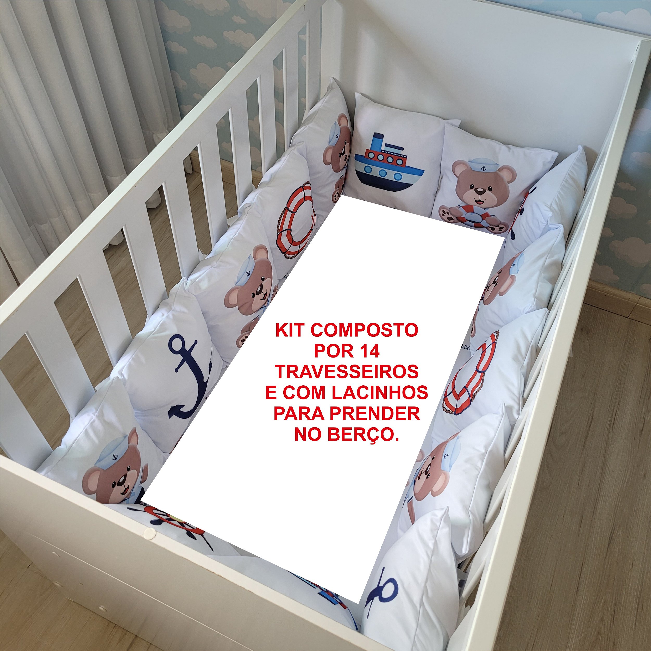 Kit berço com 14 unidades de travesseiros, fechando todo o berço (berço padrão americano/1,3xm x 0,70xm).