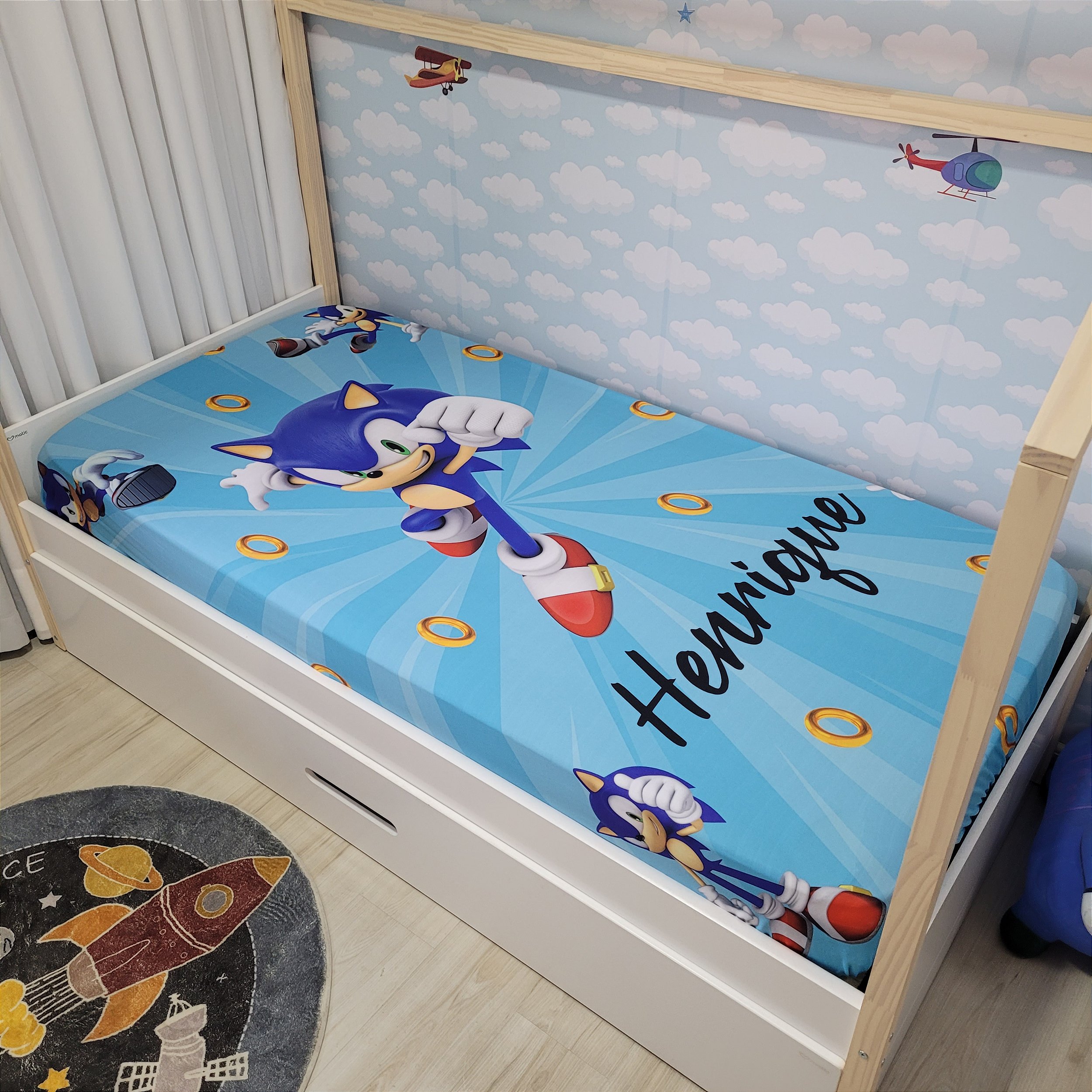 Lençol tamanho solteiro com elástico personalizado com o nome e tema a sua escolha.